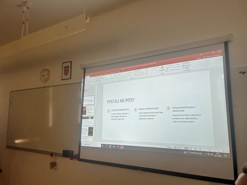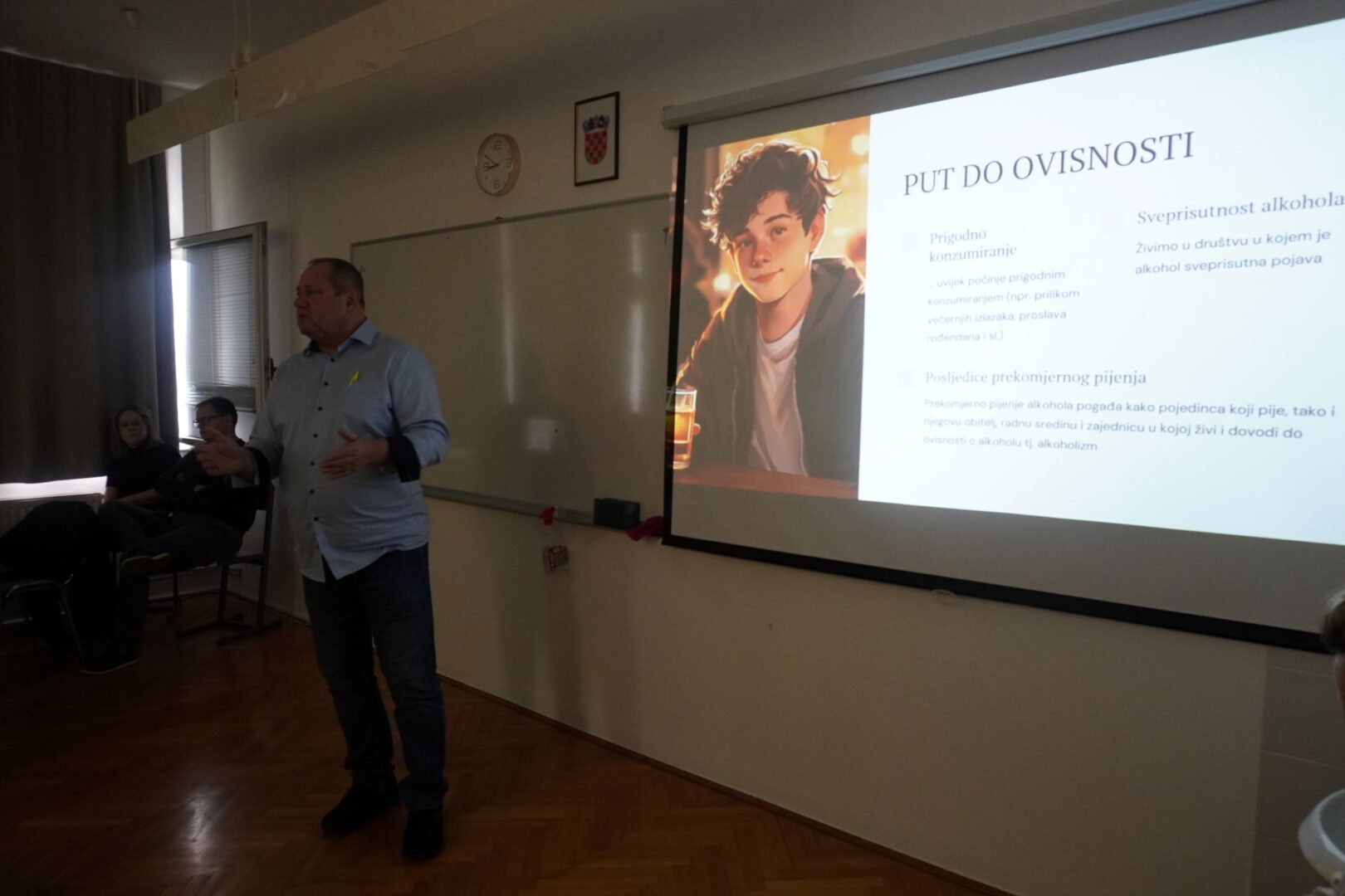 Učenici prvih razreda Srednje škole Čazma sudjelovali su u edukativnom predavanju koje je održao djelatnik MUP-a, g. M. Cindrić, u sklopu preventivnog projekta „Zdrav za 5“. Predavanje je bilo usmjereno na prevenciju ovisnosti te promicanje zdravih i odgovornih životnih navika među mladima.